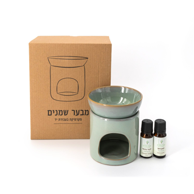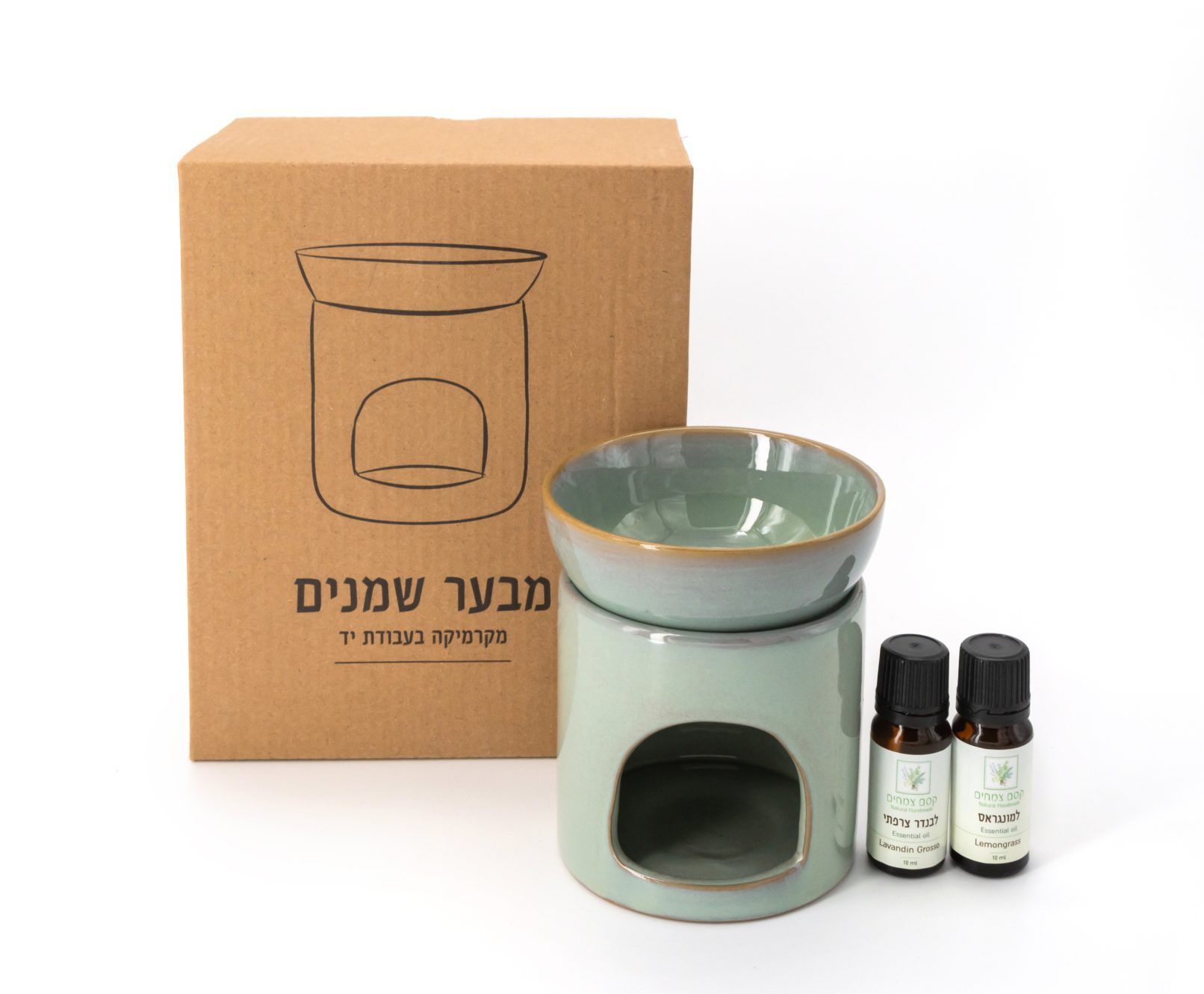 / מבער שמנים קרמי ירוק מרווה קסם צמחים